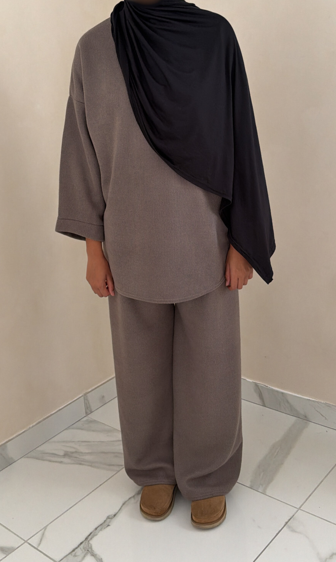 Découvrez notre ensemble en maille chaude, conçu pour offrir un confort absolu tout en restant élégant. Parfait pour l’hiver, cet ensemble ample est composé d’un haut doux et d’un pantalon large, pour une silhouette à la fois détendue et stylée.